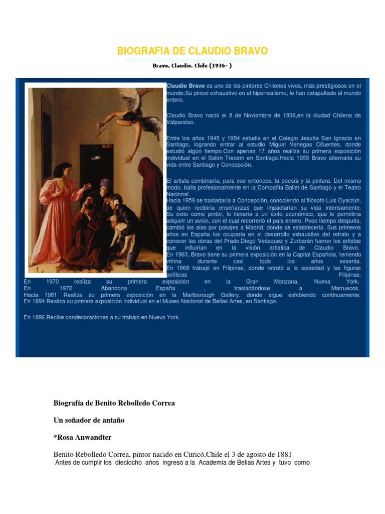 Biografia De Claudio Bravo Pdf Artes General Personas